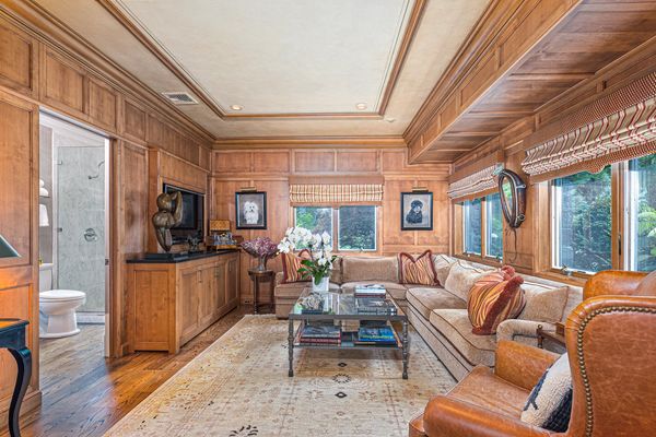 The ground floor also features a separate state-of-the-art executive-sized home office with private full bathroom, and adjacent den/library with wet bar that can be used as a conference room.