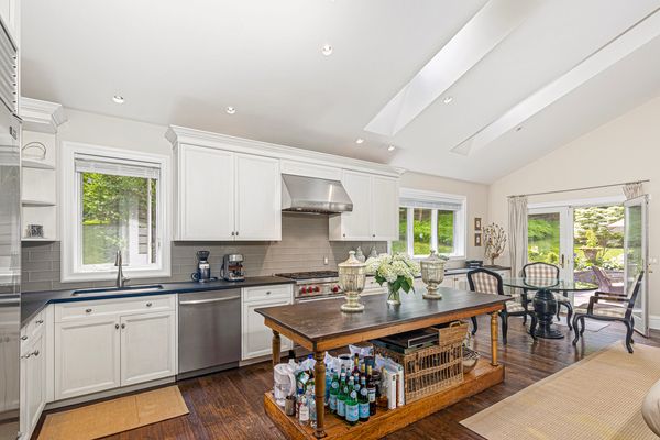 The kitchen area is configured as an open plan with a chef’s kitchen and casual eating area. Recently renovated with top-of-the-line fittings, appliances, and designed for flexibility and comfort.